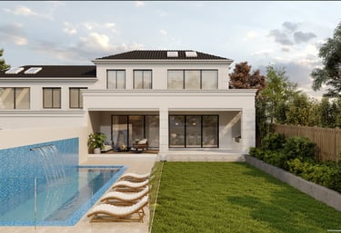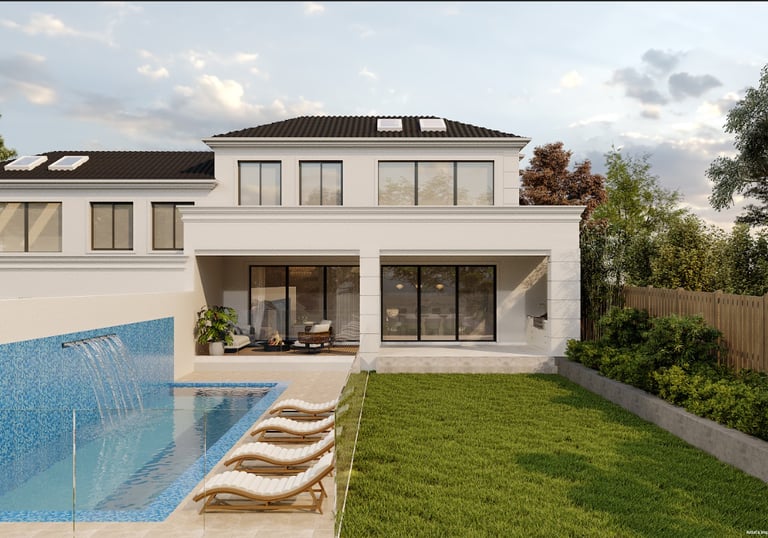 A five-bedroom, five-bathroom luxurious freestanding house with two car spaces on a 559 sqm block