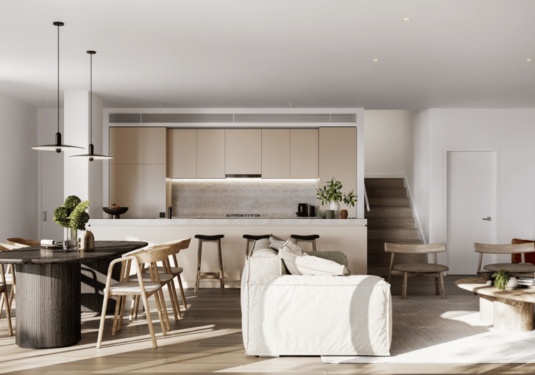 A luxurious townhouse with four bedrooms, three bathrooms, and two car spaces